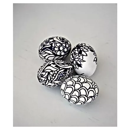 Sketch: Άδειασε τα αυγά τρυπώντας τα πάνω και κάτω με μία βελόνα και ύστερα ζωγράφισέ τα με ένα ανεξίτηλο μαρκαδοράκι. Ναι, αυτά είναι μόνο για διακόσμηση!