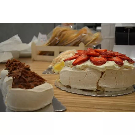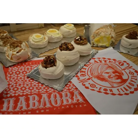 Εκτός όμως από τις πολλές φρουτένιες, σοκολατένιες και κρεμώδεις εκδοχές της Πάβλοβα θα βρεις και αλμυρά πιάτα ημέρας καθώς και μια εντυπωσιακή ποικιλία σε σοκολατάκια. Πρωτοστατεί η αυθεντική λαχταριστή Pavlova δια χειρός Εφης Γιαλούση σε όλες τις παραλλαγές: με φρέσκες φράουλες, σοκολάτα, κάστανο, λεμόνι. Παράλληλα, χειροποίητα κέικ, μπισκότα, μαρμελάδες καθώς και πιτάκια και φαγητά για το χέρι ή για το σπίτι όλα με υγιεινά και φρέσκα υλικά συμπληρώνουν τη γευστική ποικιλία του χώρου.