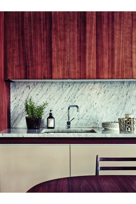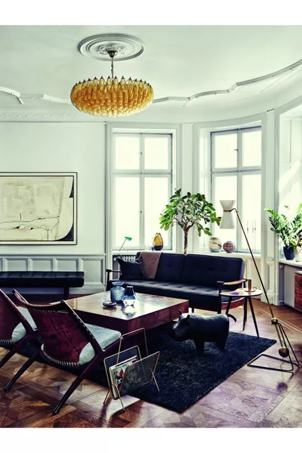 Πρόκειται για ένα διαμέρισμα σε αρχιτεκτονική Jugend –όπως αποκαλούν οι Σκανδιναβοί την art nouveau– στο κέντρο της Στοκχόλμης, το οποίο αναπαλαιώθηκε όπου χρειάστηκε –ξύλινα παρκέτα και γύψινες οροφές– με σεβασμό στον αρχικό του χαρακτήρα