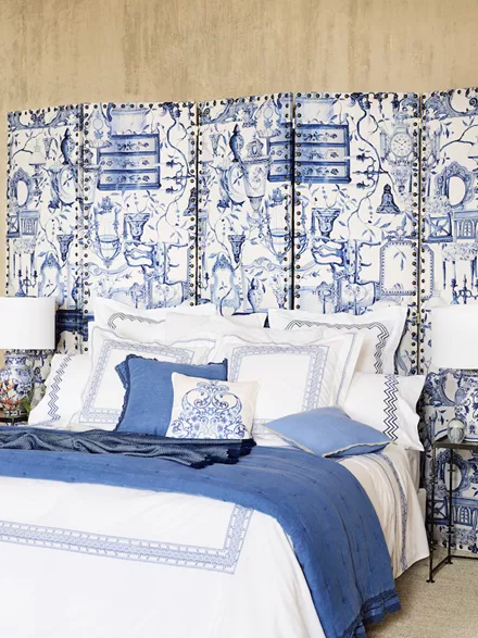 Οι μπλε αποχρώσεις στο υπνοδωμάτιο δημιουργούν ταξιδιωτικούς συνειρμούς.