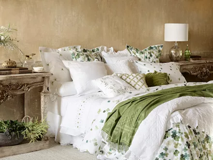 Το πράσινο μπλέκεται με το λευκό και στην κρεβατοκάμαρα και της χαρίζει ηρεμία και γαλήνη