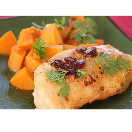 7:00 μμ- δείπνο 1 φιλέτο κοτόπουλο, τσιγαρισμένο σε 1/4 του κουταλιού της σούπας βούτυρο, σβησμένο σε 250 ml κόκκινο κρασί και το χυμό από μισό λεμόνι. Σέρβιρε το με 100 γρ πράσινα φασόλια, μαγειρεμένα στον ατμό και μια ψημένη γλυκοπατάτα.