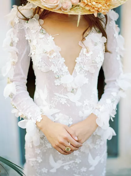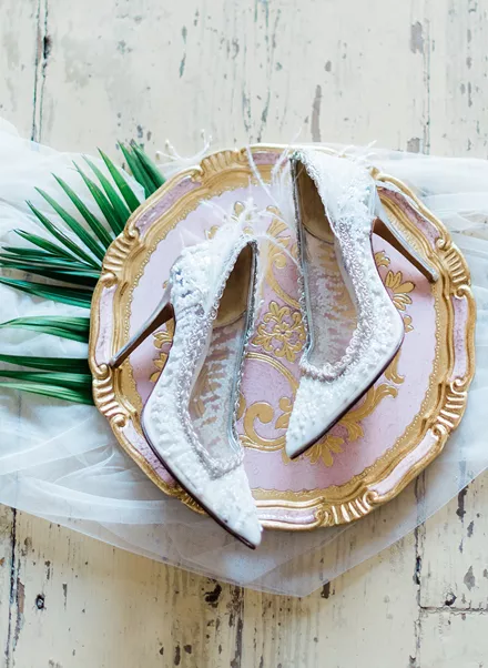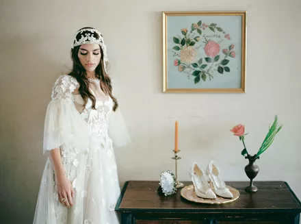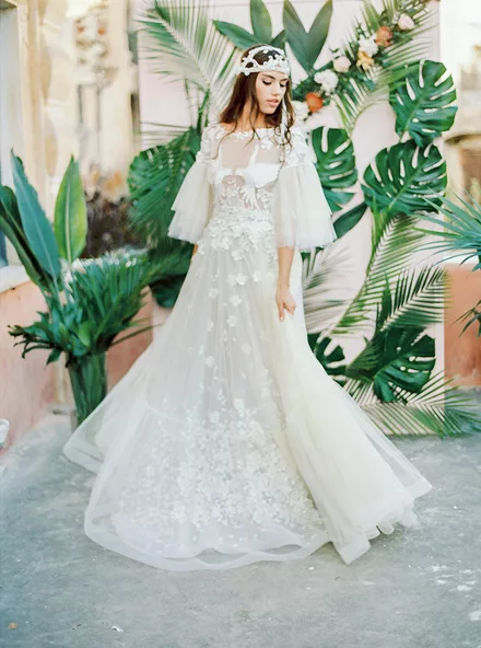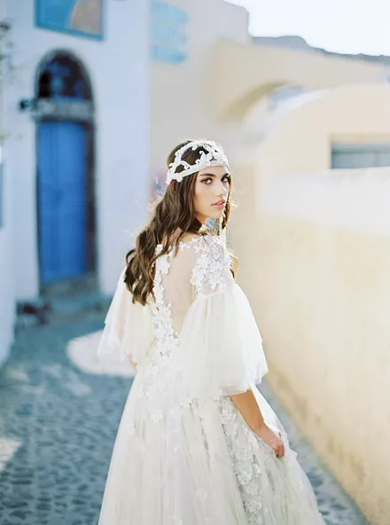 Σε ένα αρχοντικό 200 ετών και το μοναδικό τοπίο του ηφαιστειακού βράχου της Σαντορίνης στήθηκε ένα κατάλληλο σκηνικό για το πιο εμβλητικό styled shoot. Την φωτογράφηση έκανε ο Sotiris Tsakanikas, τα εκπληκτικά νυφικά ήταν δια χειρός Made Bride by Antonea ενώ τα ιδιαίτερα παπούτσια και headpieces ανήκουν στο brand Savrani Collections.