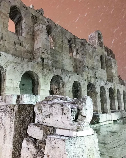 Το χιόνι που περίμεναν για αρκετές μέρες οι κάτοικοι της πρωτεύουσας άρχισε να πέφτει από το βράδυ της Δευτέρας με τις νιφάδες να ντύνουν στα λεύκα ακόμα και το κέντρο της Αθήνας.