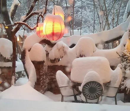 Η θέα από τα παράθυρα είναι ένα λευκό τοπίο.