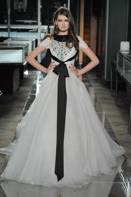 Από την άλλη πλευρά ο σχεδιαστής Reem Acra ήταν από εκείνους που τόλμησαν κάτι διαφορετικό και δημιούργησαν total black haute couture νυφικά. Στο εντυπωσιακό show που πραγματοποιήθηκε στο κοσμηματοπωλείο Tiffany&Co παρουσίασε μία ξεχωριστή bridal συλλογή με εντυπωσιακά total black νυφικά που μας θύμισαν απόλυτα το iconic στυλ της Audrey Hepburn. Τέλος, η σχεδιάστρια Kelly Faetanini προτίμησε την εναλλαγή λευκού μαύρου σε εντυπωσιακές full skirts η οποία ήταν εξίσου ενδιαφέρουσα.