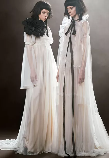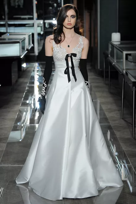 Η Vera Wang ήταν από τις πρώτες σχεδιάστριες που εισήγαγε το μαύρο χρώμα στις bridal συλλογές ήδη από το 2014. Φέτος όλο και περισσότεροι ήταν οι σχεδιαστές που εμπιστεύθηκαν τη δυναμική του μαύρου και όπως φαίνεται θα καθιερωθεί ως το επόμενο statement bridal κομμάτι. Οι σχεδιαστές Marchesa και Elisabeth Fillmore επέλεξαν να δώσουν ένα θεατρικό στυλ στις δημιουργίες τους επιλέγοντας λεπτομέρειες όπως οι μαύροι φιόγκοι.