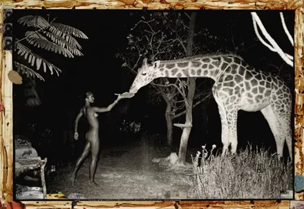 PETER BEARD - 'HOG RANCH FRONT LAWN, NIGHT FEEDER (2:00 AM) WITH MAUREEN GALLAGHER & MBUNO, FEB. 1987'