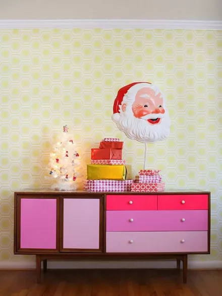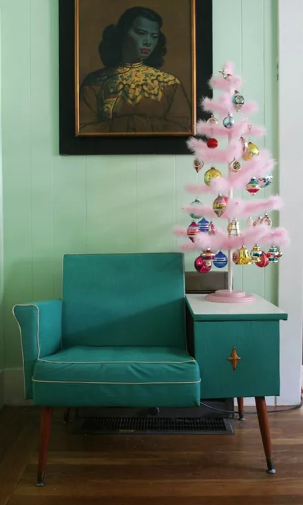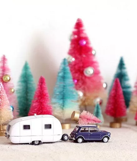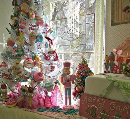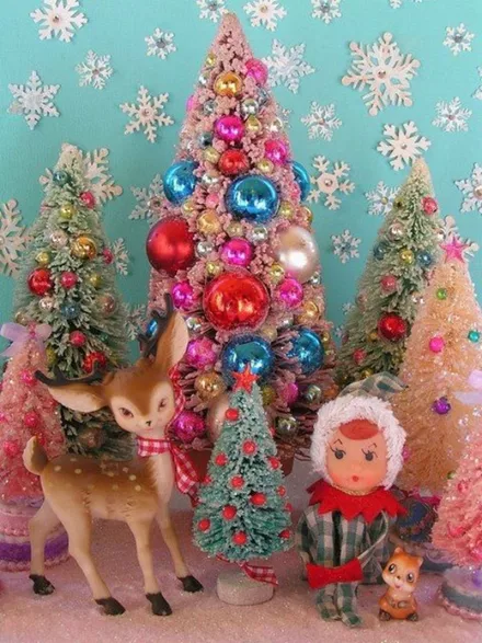 Τα χρωματιστά (ροζ, λευκά, ασημένια) δέντρα συνδυάζονται με τα χρωματιστά, ρετρό στολίδια