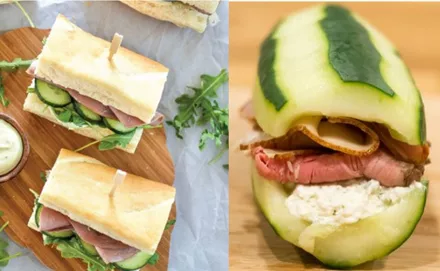 Αγγούρι αντί για μπαγκέτα:Αν επιμένεις στα κλασικά πρωινά, που αποτελούνται από τοστ, tortillas και σάντουιτς κάθε είδους, δοκίμασε να αντικαταστήσεις τις μπαγκέτες, που σου προσφέρουν έξτρα περιττές θερμίδες, με... αγγούρι. Άδειασε το εσωτερικό του και χρησιμοποίησέ το ως σάντουιτς, γεμίζοντάς το με τα υλικά που επιθυμείς. Το αποτέλεσμα θα σε ενθουσιάσει.