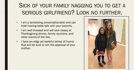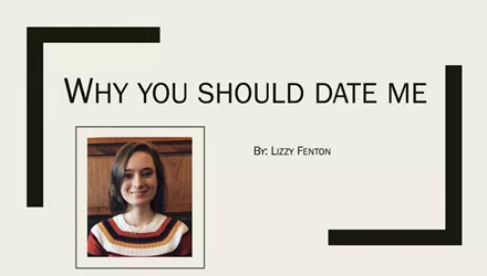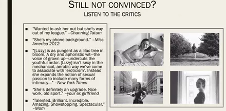 Φαίνεται πως η Lizzy έχει τα φόντα να γίνει τέλεια επαγγελματίας αλλά και σύντροφος αφού αφιέρωσε χρόνο, ενέργεια και πολύ χιούμορ για να φτιάξει μια παρουσίαση Powerpoint προκειμένου να πείσει το αγόρι που της αρέσει να βγει μαζί της!