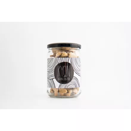 Το ΚΥΩΝ natural dog foods εξασφαλίζει με τη σειρά του υγιεινές και νόστιμες λιχουδιές για κάθε σκύλο. Μετά από πολλές δοκιμές, η ομάδα κατέληξε σε έξι συνταγές που συνδυάζουν τα καλύτερα συστατικά από ντόπιους παραγωγούς της Ελλάδας. Έτσι, σκυλάκια και ιδιοκτήτες έχουν να επιλέξουν ανάμεσα σε ψητό μπέικον - γραβιέρα Τήνου και θυμάρι, μπανάνα – κανέλα και θυμαρίσιο μέλι και μερικούς ακόμα λαχταριστούς συνδυασμούς.