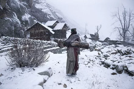 #7 Τρίτη θέση, Άνθρωποι: Μακρινή ζωή στους -21 βαθμούς, Himachal Pradesh, IndiaΣτο μακρινό χωριό Himachal Pradesh, της φυλής Kinnaura, μια γυναίκα κουβαλά ένα κούτσουρο προκειμένου να ζεστάνει το σπίτι της.