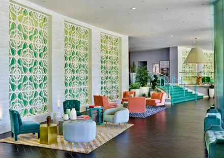 Mid-century έπιπλα, αποχρώσεις που ξεπήδησαν από... ζαχαροπλαστείο, κομψά γεωμετρικά μοτίβα και πολυτελή υλικά: αυτά ήταν τα συστατικά της resort πολυτέλειας το 1960. Και τότε, αν τύχαινε να είσαι σταρ του Hollywood και πήγαινες για παραθερισμό στο Palm Springs, ένα ήταν το μέρος για να μείνεις: το ιστορικό ξενοδοχείο Riviera!
