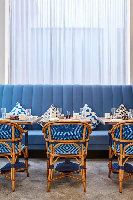 Το δημιουργικό γραφείο Rose Ink Workshop που κρύβεται πίσω από τη θεαματική αναβίωση της ρετρό πολυτέλειας του Riviera, βασίστηκε σε μια μείξη εκλεκτικού και σύγχρονου στυλ για να το καταφέρει. Το αποτέλεσμα; Είναι όσο πολυτελές, γαληνευτικό αλλά και διεγερτικό για τις αισθήσεις όσο θα απαιτούσαμε από ένα σύγχρονο θέρετρο με ρετρό επιρροές.