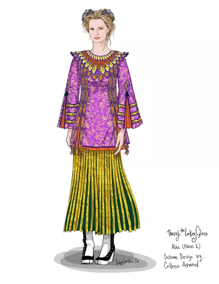«Νομίζω ότι σε ένα παράξενο και ιδιαίτερο τρόπο,η πανοπλία κοστούμι της Iracebeth μπορεί να έχει απήχηση στον κόσμο της μόδας. Δεν γνωρίζω ακριβώς τι θα συμβεί, αλλά νομίζω ότι ένα μέρος του κόσμου της μόδας θα συνδεθεί με αυτό με ένα χιουμοριστικό τρόπο και ανυπομονώ να το δω. Και chinese- themed σακάκι της Alice, λόγω της δομής και του τρόπου που είναι σχεδιασμένο, μπορεί να επανεμφανιστεί στις πασαρέλες σε ένα-δύο χρόνια. Επίσης, σχεδιάσαμε κάποιες καταπληκτικές μπότες για την Iracebeth και τη Mirana που ξέρω ότι το κοινό θα τις λατρέψει».Στην παρακάτω gallery θα βρεις τα costume sketches των βασικών χαρακτήρων που σχεδίασε εκείνη και θα πάρεις μία μικρή γεύση από την εξαιρετική δουλειά της.
