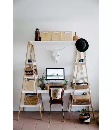 Δύο σκάλες γίνονται βάση για ένα μοναδικό έπιπλο γραφείου με ράφια! Τι πιο cool;
