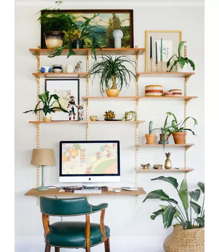 Ο χώρος πάνω από το γραφείο ενδείκνυται για να βάλεις ράφια! Βάψε τους μεταλλικούς οδηγούς σε ό,τι χρώμα θέλεις και προσάρμοσε ράφια σε διαφορετικά ύψη για ένα εκλεκτικό αποτέλεσμα.