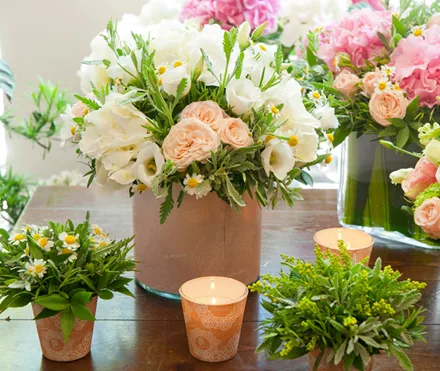 Παστέλ αποχρώσεις και στα λουλούδια για ρομαντικό αποτέλεσμα.