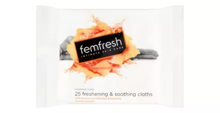 femfresh Freshening and Soothing ClothsΙδανικά για το γραφείο στη δουλειά ή το μπάνιο στο σπίτι. Τα μαντηλάκια καθαρίζουν, αναζωογονούν και απομακρύνουν τις οσμές. Με αναζωογονητική καλέντουλα και καταπραϋντικά εκχυλίσματα μολόχας, η ειδική αυτή φόρμουλα καθαρίζει, αναζωογονεί και καταπραΰνει στο λεπτό. Δεν περιέχει οινόπνευμα, σαπούνι και έχει ισορροπημένο pH.