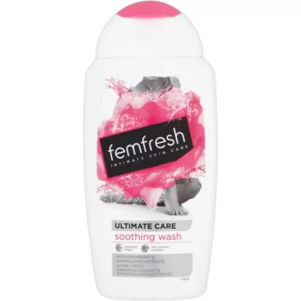 femfresh Soothing WashΗ φόρμουλα με ισορροπημένο pH αυτού του καταπραϋντικού υγρού καθαρισμού έχει σχεδιαστεί ειδικά χρησιμοποιώντας προβιοτική σύνθεση, ενισχυμένη με εκχυλίσματα κράνμπερι και κενταύριο κυανό, που ενυδατώνει την ευαίσθητη περιοχή, για να έχεις αίσθηση φρεσκάδας όλη μέρα.