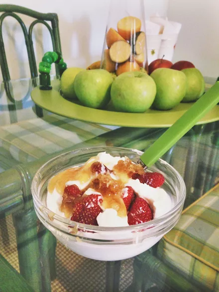 Ένα μπολ με γιαούρτι, φρούτα και μέλι είναι ο πιο δροσερός (και θρεπτικός) τρόπος για να ξεκινήσει η Φωτεινή την ημέρα της.