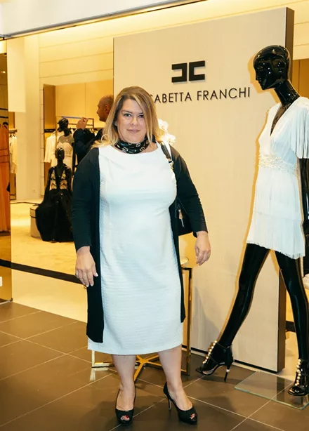 Highlight της βραδιάς η παρουσία της σχεδιάστριας: η Elisabetta Franchi – η οποία επισκέφτηκε για πρώτη φορά την Αθήνα.