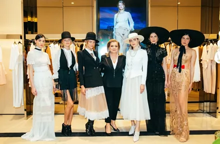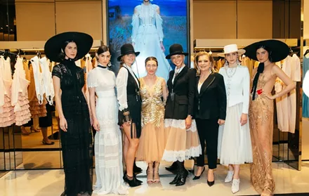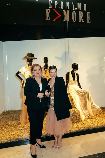 Ο κομψός αυτός χώρος μέσα στο Eponymo E>More, στο Golden Hall, ήταν η «σκηνή» όπου μοντέλα ντυμένα με τις εξαιρετικά θηλυκές δημιουργίες του Οίκου, κυκλοφορούσαν ανάμεσα στους καλεσμένους του μοναδικού fashion cocktail party.