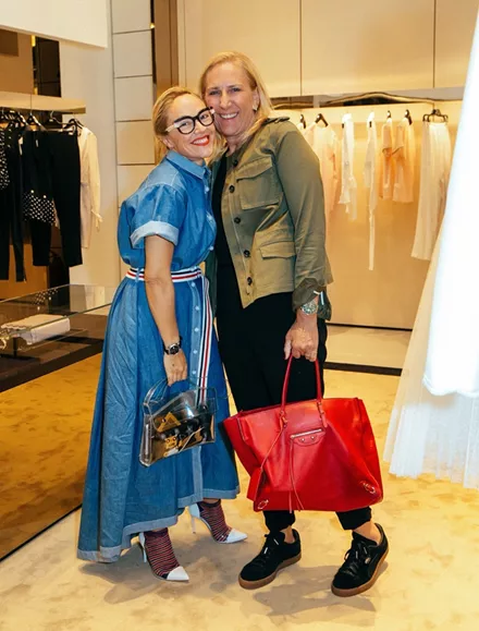 Έδειχνε εντυπωσιακή μέσα στο φόρεμα της με κέντημα από χρυσές παγιέτες σε σχήμα φτερών και nude τούλι. Την υποδέχτηκαν η Πρόεδρος και CEO του Gruppo Pagoni, Λία Παγώνη, με κομψό σακάκι του Οίκου με χρυσή λεπτομέρεια και η κόρη της Φωτειάνα Παγώνη, με εφαρμοστό παντελόνι και top του Οίκου με κοψίματα και φερμουάρ. Η σχεδιάστρια συνοδευόταν από τον Worldwide Retail Manager, Matteo Zucchini και την Διευθύντρια Marketing & Communications, Giovanna Matteini.
