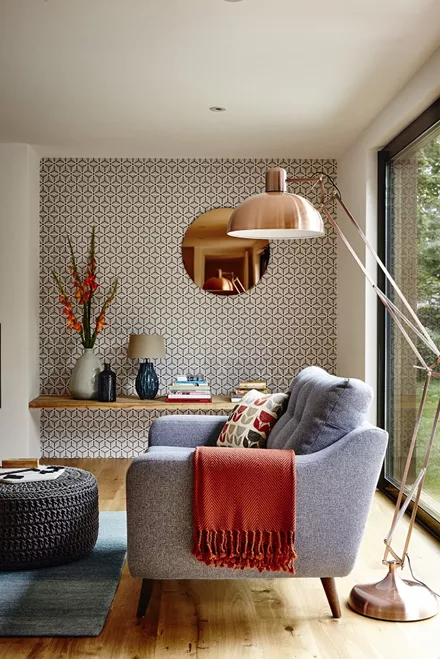 Οι νέες γεωμετρικές ταπετσαρίες έχουν midcentury ύφος και προσθέτουν ένταση σε ένα μοντέρνα διακοσμημένο χώρο.