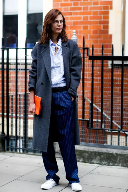 Η ανδρική μόδα εμπνέει: διάλεξε ένα φαρδύ ριγέ παντελόνι, ένα πουκάμισο και ένα oversized παλτό για μία άνετη και cool εμφάνιση