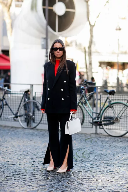 #4 Συνδύασε ένα κλασικό κομμάτι με ένα trendy (εδώ πχ το σταυρωτό σακάκι με cropped τζιν με σκισίματα)