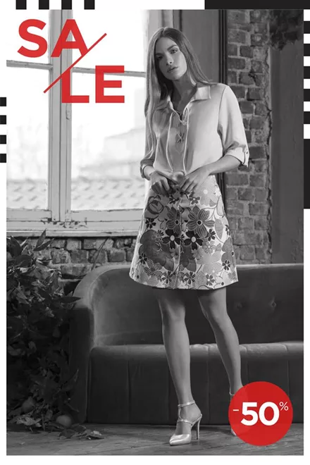 Σε όλες τις φετινές συλλογές (Collection, Size Plus, Maternity, Limited και Shoes) θα βρεις τα σχέδια με - 50%. Το shopping συνεχίζεται στο τμήμα Outlet, όπου βρίσκεις κομμάτια προηγούμενων συλλογών σε ακόμα χαμηλότερες τιμές, ξεκινώντας από 50% και φθάνοντας στο 85% κάτω των αρχικών τιμών τους!