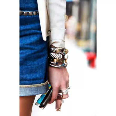 Αντί για να παίρνεις μπιζού με πέτρες προτίμησε τα ογκώδη μεταλλικά που δείχνουν πιο άκριβα και "βαριά". Άλλωστε ένα ζηλευτό arm party ανεβάζει κάθε look.