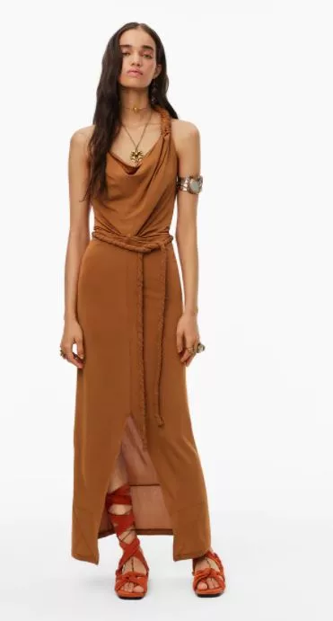 Μακρύ φόρεμα με ριχτό ντεκολτέ και πλεκτές τιράντες, Zara