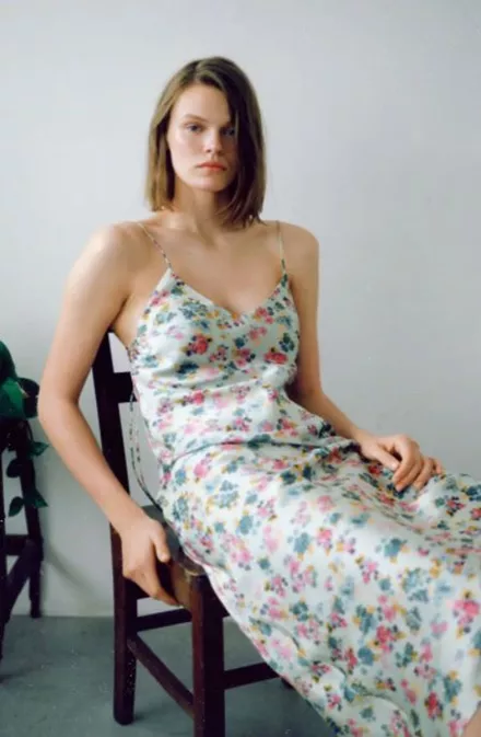 Εμπριμέ φόρεμα με λεπτές τιράντες σε όψη σατέν, Zara