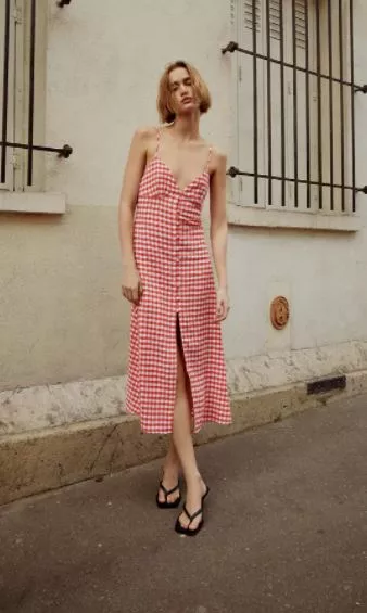Καρό φόρεμα με λεπτές τιράντες και μπροστινό σκίσιμο, Zara
