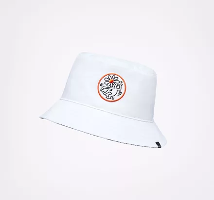 Εκτός από τα sneakers, ένα από τα t-shirts της collection αξίζει σίγουρα μία θέση στη γκαρνταρόμπα σου. Οι μπλούζες είναι λευκές και κοσμούνται από την εμβληματική τέχνη του Keith Haring. Ακριβώς όπως και τα bucket hats που επέστρεψαν στον κόσμο της μόδας τα τελευταία χρόνια και έχουν ήδη ενθουσιάσει τους λάτρεις του edge στιλ. Θα το βρεις σε δύο σχέδια, το ένα διακοσμημένο με κεντήματα και το δεύτερο με κεντήματα και patches από λουλούδια.