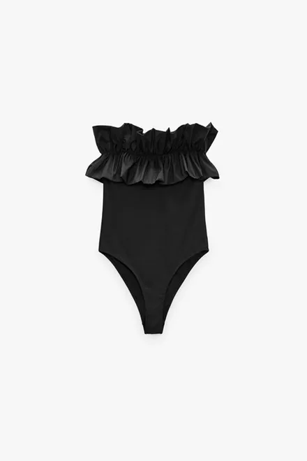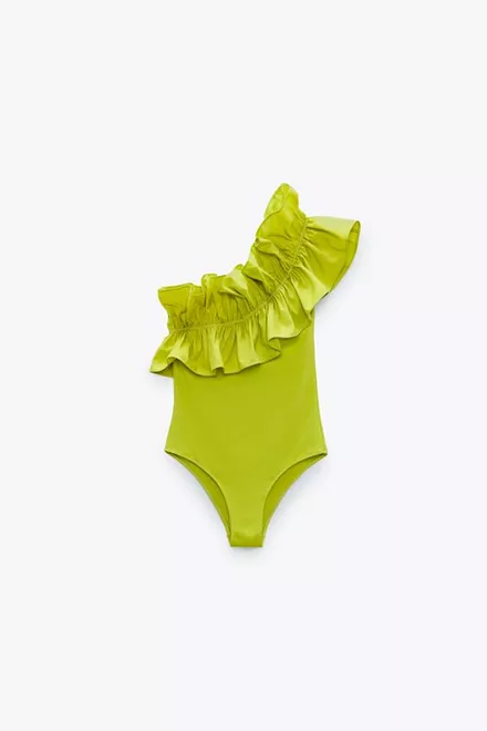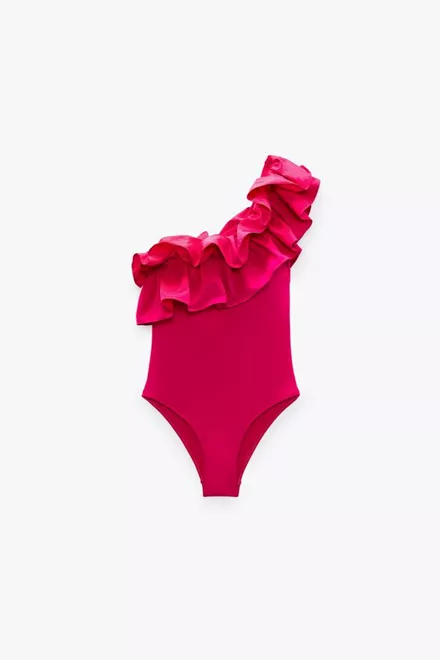 Συγκεκριμένα, πρόκειται για ένα ολόσωμο, στράπλες μαγιό σε έντονη μοβ απόχρωση από τη beachwear συλλογή του brand, Zara. Το εν λόγω μαγιό υπάρχει σε διαφορετικές αποχρώσεις αλλά και σε σχέδιο με έναν ώμο και αξίζει μία θέση στη βαλίτσα των διακοπών σου. Ο λόγος είναι πως μπορείς να το φορέσεις τόσο στην παραλία όσο και στις βόλτες σου στο νησί, αφού είναι πολύ εντυπωσιακό και μπορεί να φορεθεί άνετα ως τοπ. Συνδύασε με το με σορτς, βερμούδες ή φούστες και το αποτέλεσμα θα είναι πολύ κομψό.
