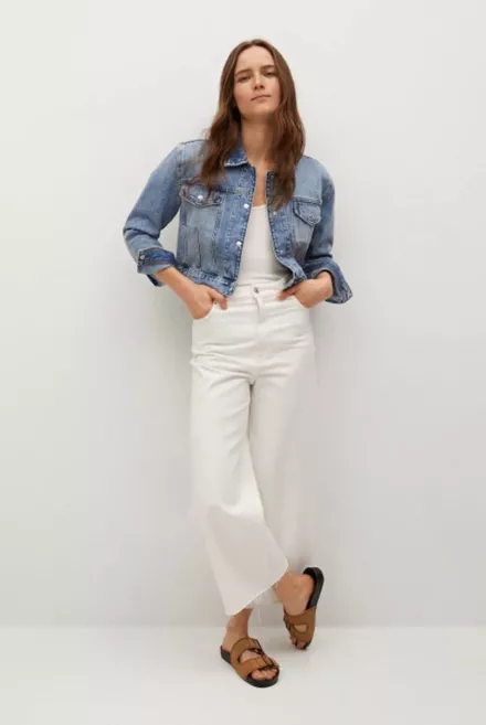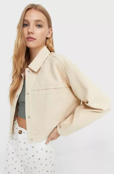 Κοντό κρεμ ντένιμ τζάκετ, Stradivarius