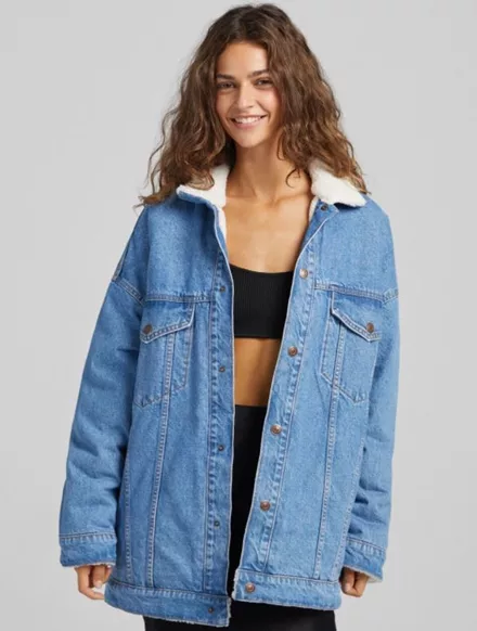 Τζάκετ denim oversized με όψη από συνθετική γούνα, Bershka