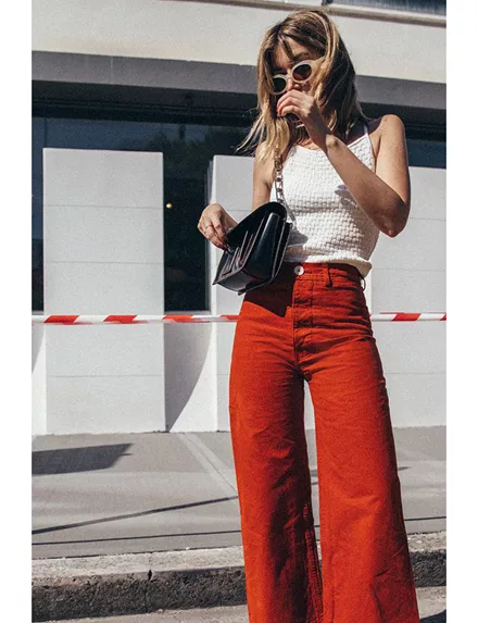 Ένα κόκκινο φαρδύ παντελόνι φωνάζει "καλοκαίρι!"