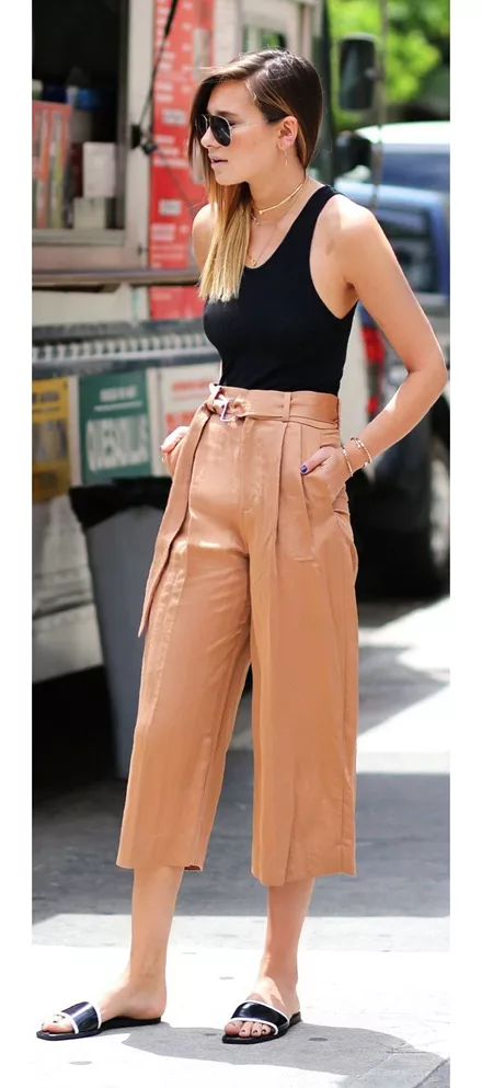Φόρεσε ένα φαρδύ παντελόνι τύπου ζιπ κιλότ σε ανοιχτό χρώμα για άνεση και στυλ
