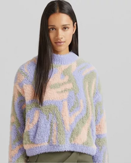 Πουλόβερ ζακάρ με εφέ γούνας, Bershka