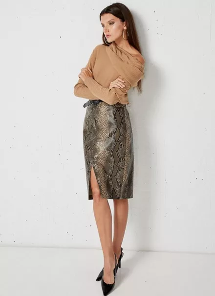 Πένσιλ φούστα με snake print και σκίσιμο, BSB
