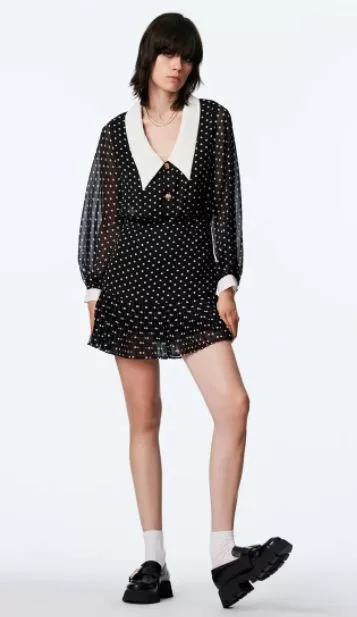 Πουά μίνι φόρεμα με έντονο γιακά, Zara
