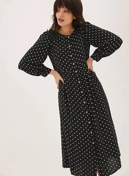 Μίντι πουά φόρεμα με κουμπιά, Marks & Spencer