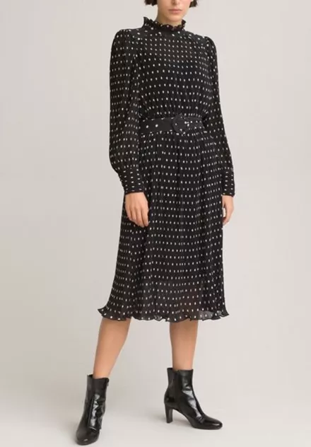 Μίντι πουά φόρεμα με κλειστή λαιμόκοψη, La Redoute