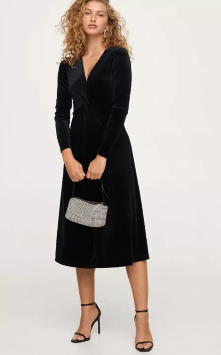 Βελούδινο μίντι φόρεμα με λαιμόκοψη ''V'', Mango