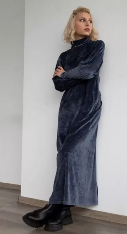 Βελουτέ μάξι φόρεμα με κλειστή λαιμόκοψη και μακρύ μανίκι, Helmi